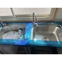 オートマ バックモニター ドラレコ付き 124L2ドア冷蔵庫 100L冷凍車 電動給水ポンプ1.5m ライディングレールステンレス 作業テーブル3個 100Lタンク2個 シンク2個 新品付き